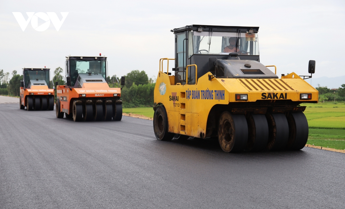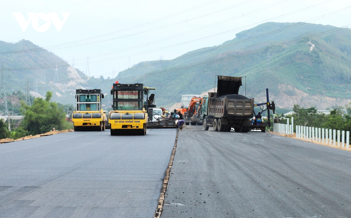 Nhà thầu khẩn trương thảm những mẻ nhựa cuối hoàn thành phần nền đường cao tốc.