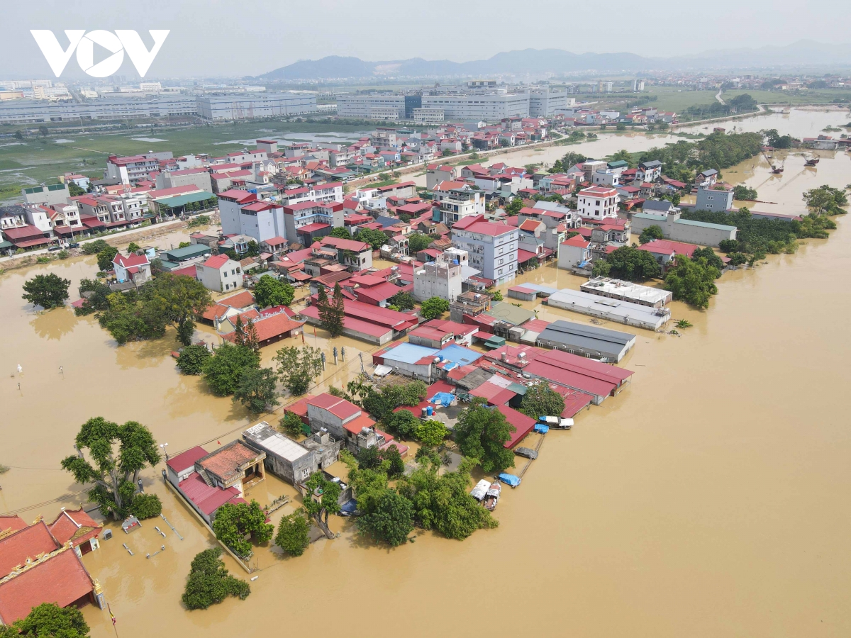 Toàn cảnh khu vực phường Nếnh bị ngập sâu trong mưa lũ