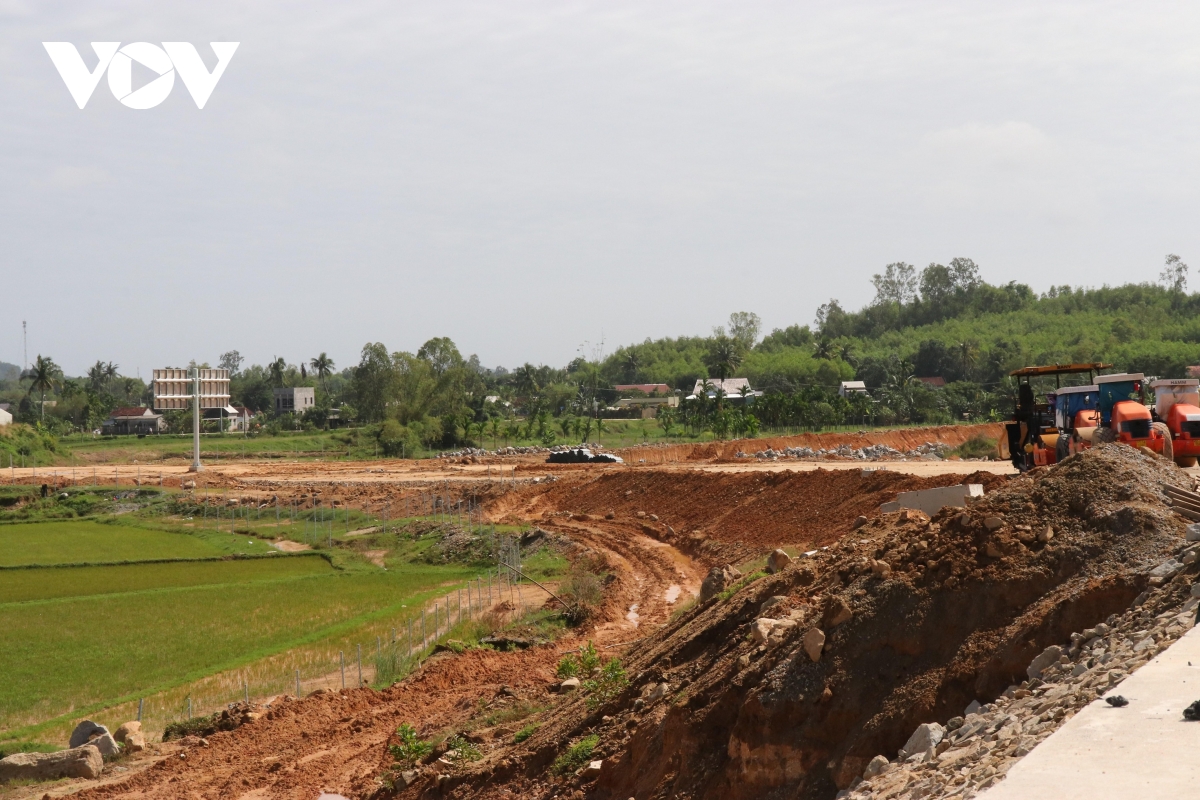 VOV.VN - Mưa lũ kéo dài nên việc thi công cao tốc Quảng Ngãi- Hoài Nhơn bị ảnh hưởng tiến độ. Sau bão lũ, các đơn vị thi công tập trung đẩy nhanh tiến độ, phấn đấu về đích tháng 12 năm nay theo đúng cam kết với Chính phủ.