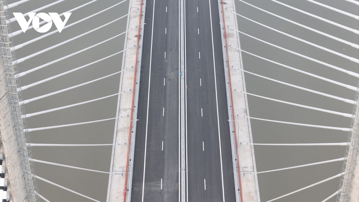 Đến nay, toàn bộ các hạng mục từ trụ tháp, hệ thống dây văng, mặt cầu đến các hạng mục kỹ thuật phụ trợ đều đã hoàn thành theo đúng thiết kế được phê duyệt.