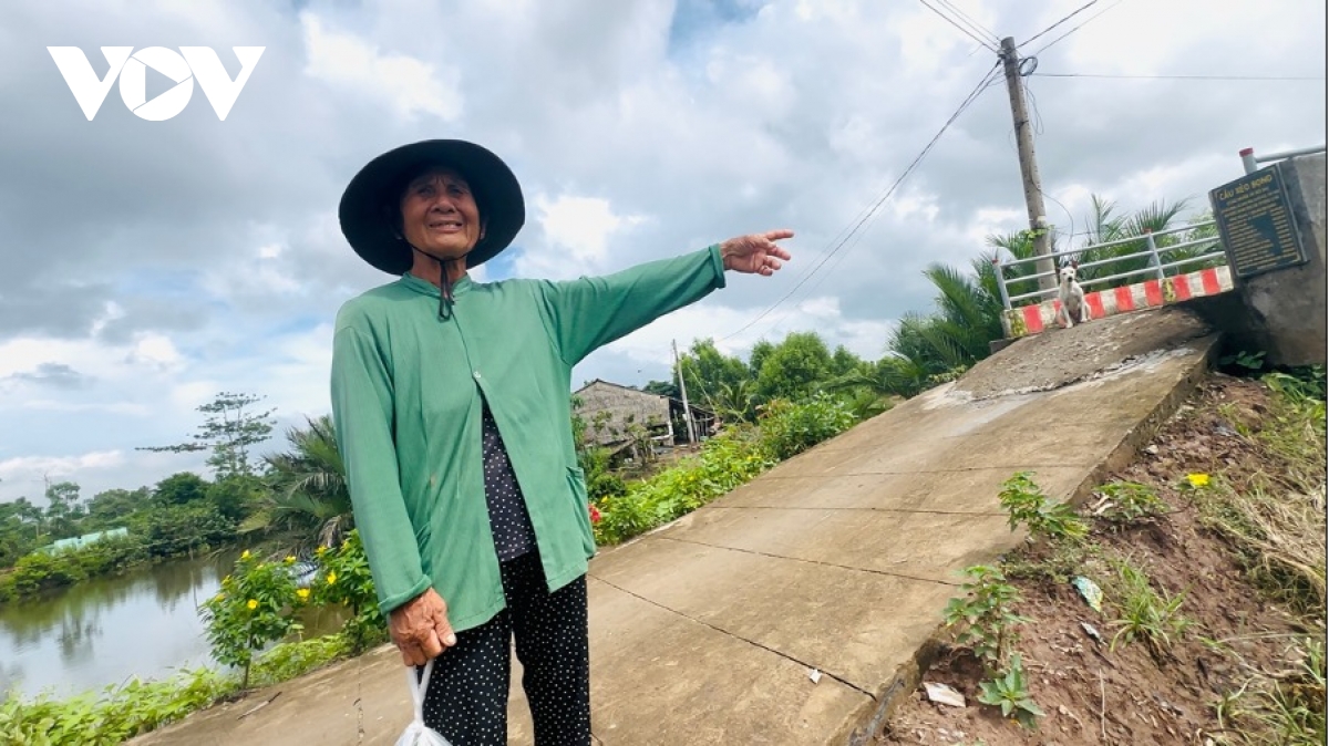 VOV.VN - Thời gian gần đây, người dân sinh sống tại ấp Xẻo Bọng, xã Long Vĩnh, tỉnh Vĩnh Long vô cùng thấp thỏm, lo âu trước sự tồn tại của một cây cầu bê tông được xây dựng tự phát chênh vênh, yếu đuối, nguy cơ sập bất kỳ lúc nào.
