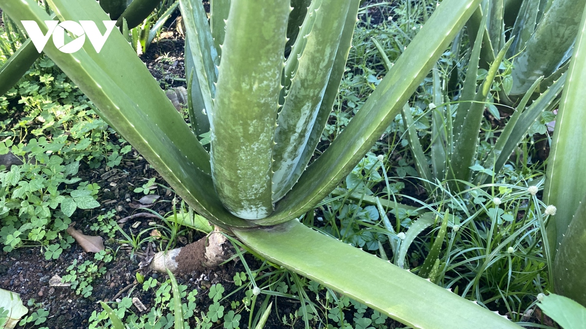 "Lúc đó tôi nhập về trồng thử, chủ yếu cho cây sống trên đất rồi tính sau, giờ ổn rồi. Thời điểm từ tháng 11 đến tháng 5 là nhu cầu tiêu thụ hàng nhiều nên các công ty rất thiếu nguồn nguyên liệu lá nha đam nên đẩy giá lên rất cao, có khi mua từ 4.000 - 5.000 đồng/kg lá, mỗi tháng mình thu mỗi cây 1 kg lá" - ông Thụy chia sẻ.