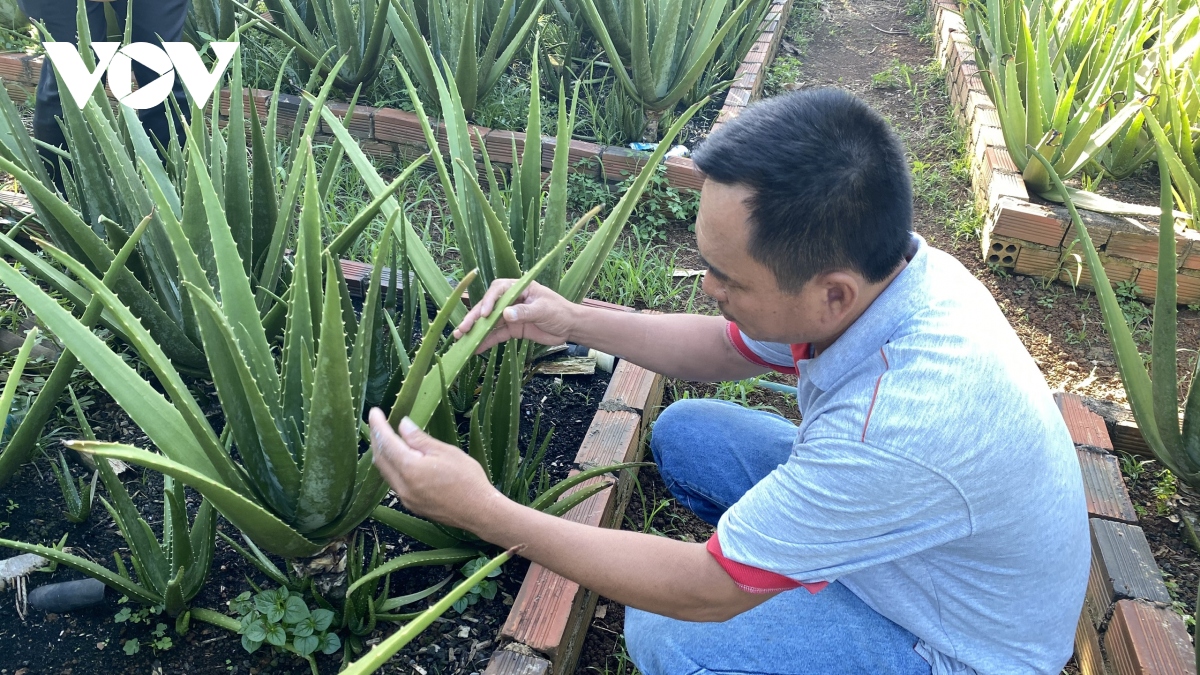 "Cây nha đam giá 2.000 đồng/kg là đã có lời rồi, một sào đất của tôi thu hoạch từ lá tầm 20 triệu đồng, còn bán cây giống từ 15 – 18 triệu đồng nên chỉ cần 1 năm sau là có thể thu hồi vốn. So với cây tiêu thì thu nhập vượt xa, cây tiêu thì 1 năm sau mới thu hoạch còn nha đam hàng tháng đã có thu nhập, chỉ cực chăm sóc lúc đầu", ông Cung phấn khởi nói.