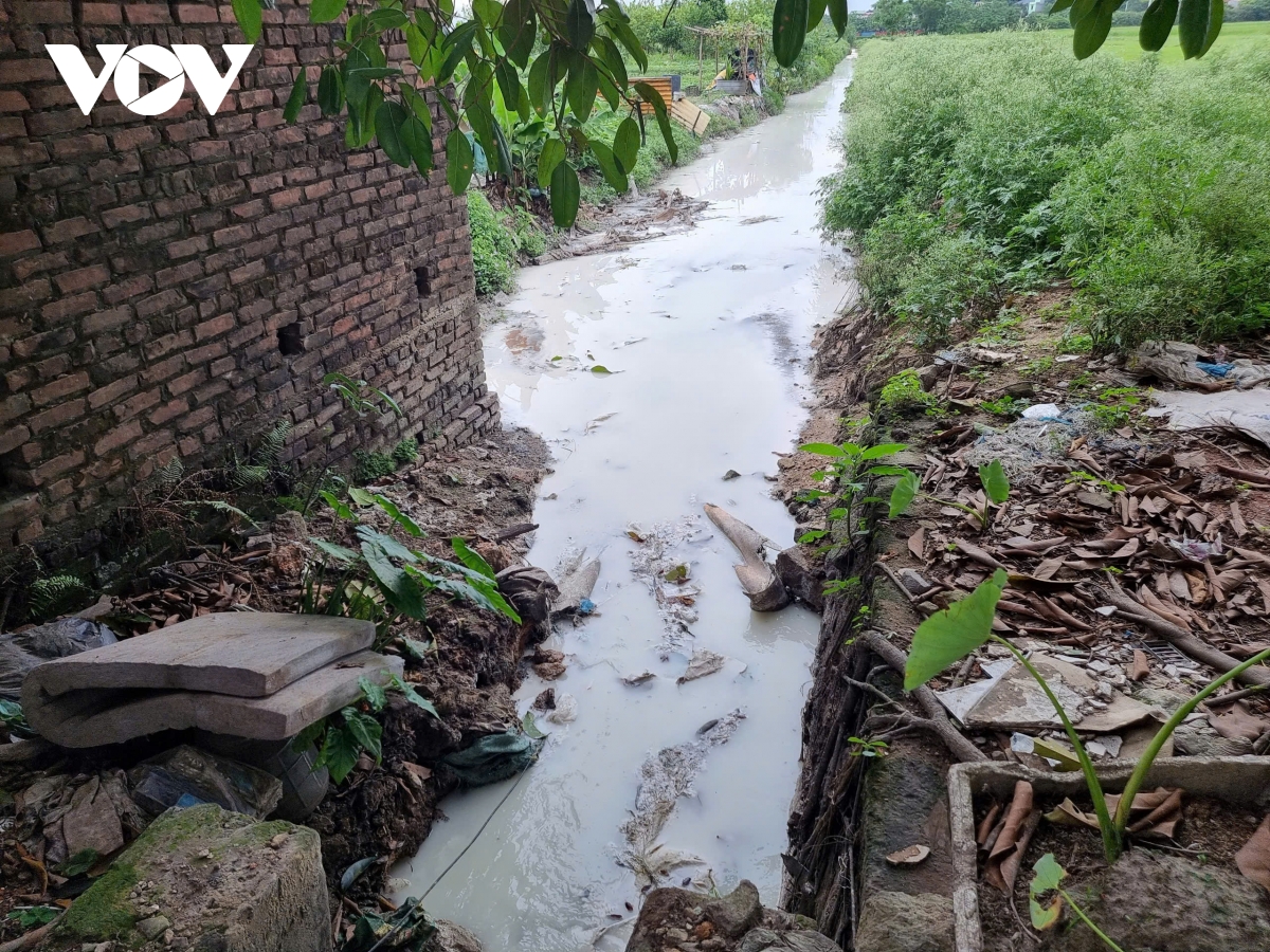 Toàn cảnh khu vực nước thải từ làng bún Khắc Niệm (phóng viên ghi nhận trước đó)