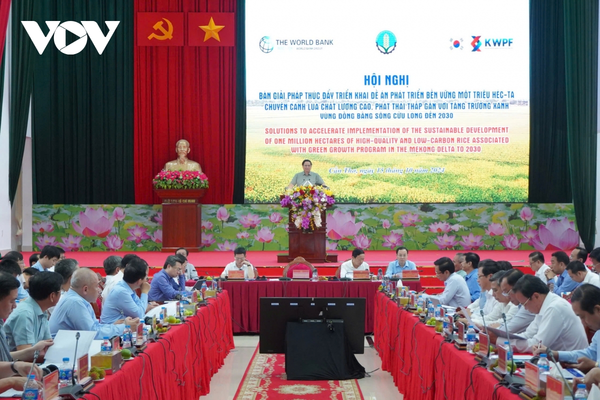 Thủ tướng Chính phủ Phạm Minh Chính chủ trì Hội nghị sau một năm triển khai Đề án "Phát triển bền vững một triệu héc-ta chuyên canh lúa chất lượng cao và phát thải thấp gắn với với tăng trưởng xanh vùng ĐBSCL đến năm 2030" diễn ra tại Cần Thơ.