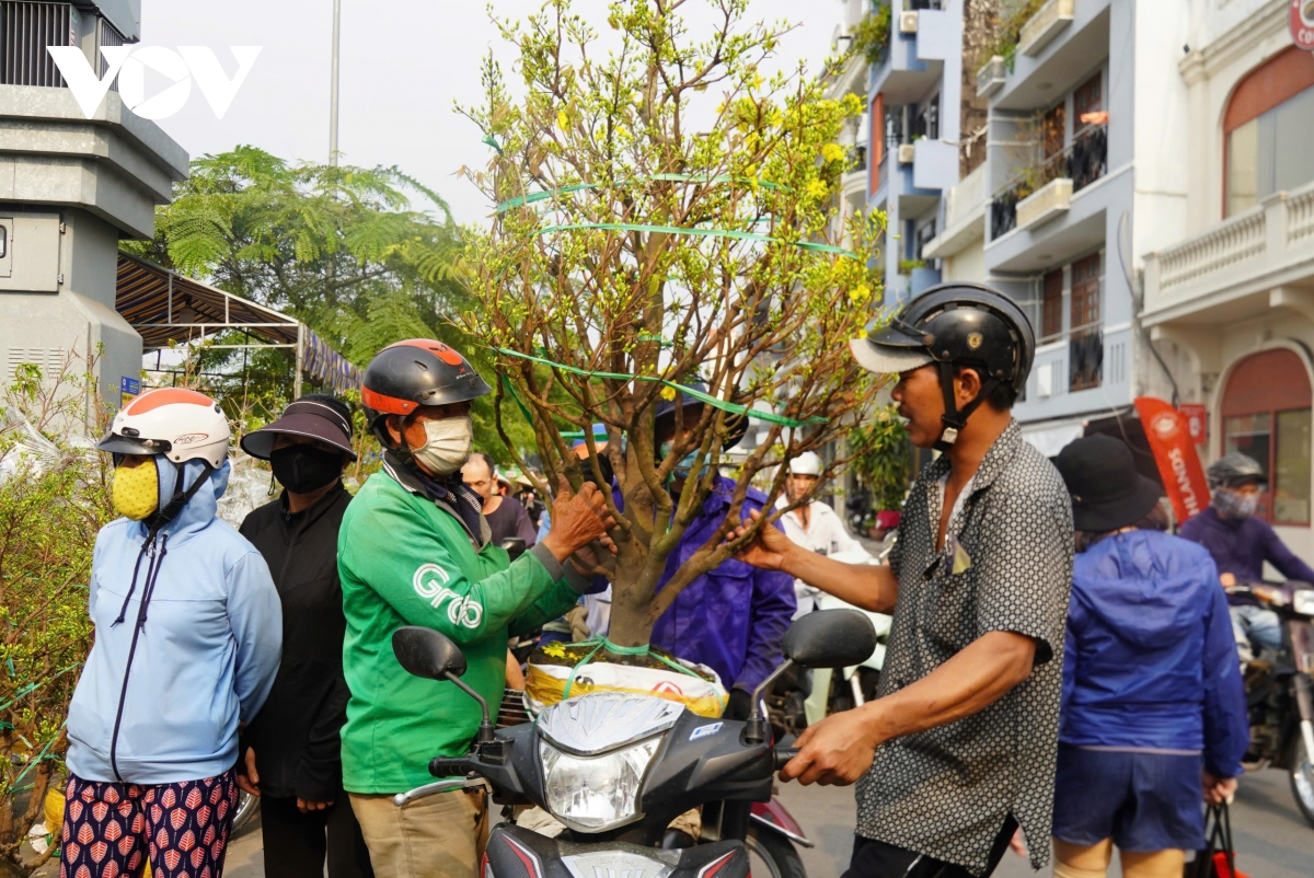 "Hôm qua nhà vườn mình đến đây từ 1 giờ chiều, hiện bán cũng ít, lai rai chứ không có nhiều. Mọi người chọn nhiều nhất là cây to chút, gọi là cây đại lộc, trung bình từ 800-1 triệu đồng", anh Tuấn nói.