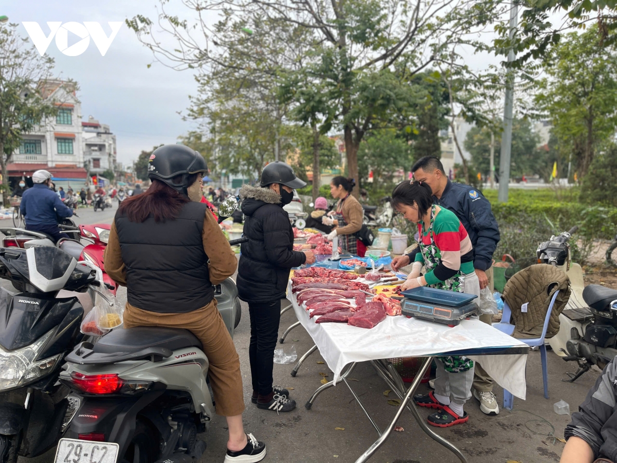 Ghi nhận tại chợ Gia Lâm, từ khoảng 6 giờ sáng, nhiều quầy hàng thịt lợn, thịt bò thịt gà, thủy hải sản, rau xanh... đã hoạt động trở lại. Dù lượng khách không quá đông như những ngày cận Tết nhưng tăng rõ rệt so với mùng 2, mùng 3. Người dân chủ yếu mua bổ sung thực phẩm tươi sống để “đổi bữa” sau những ngày sử dụng nhiều đồ chế biến sẵn.