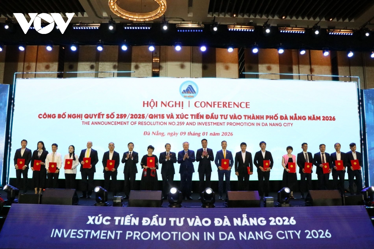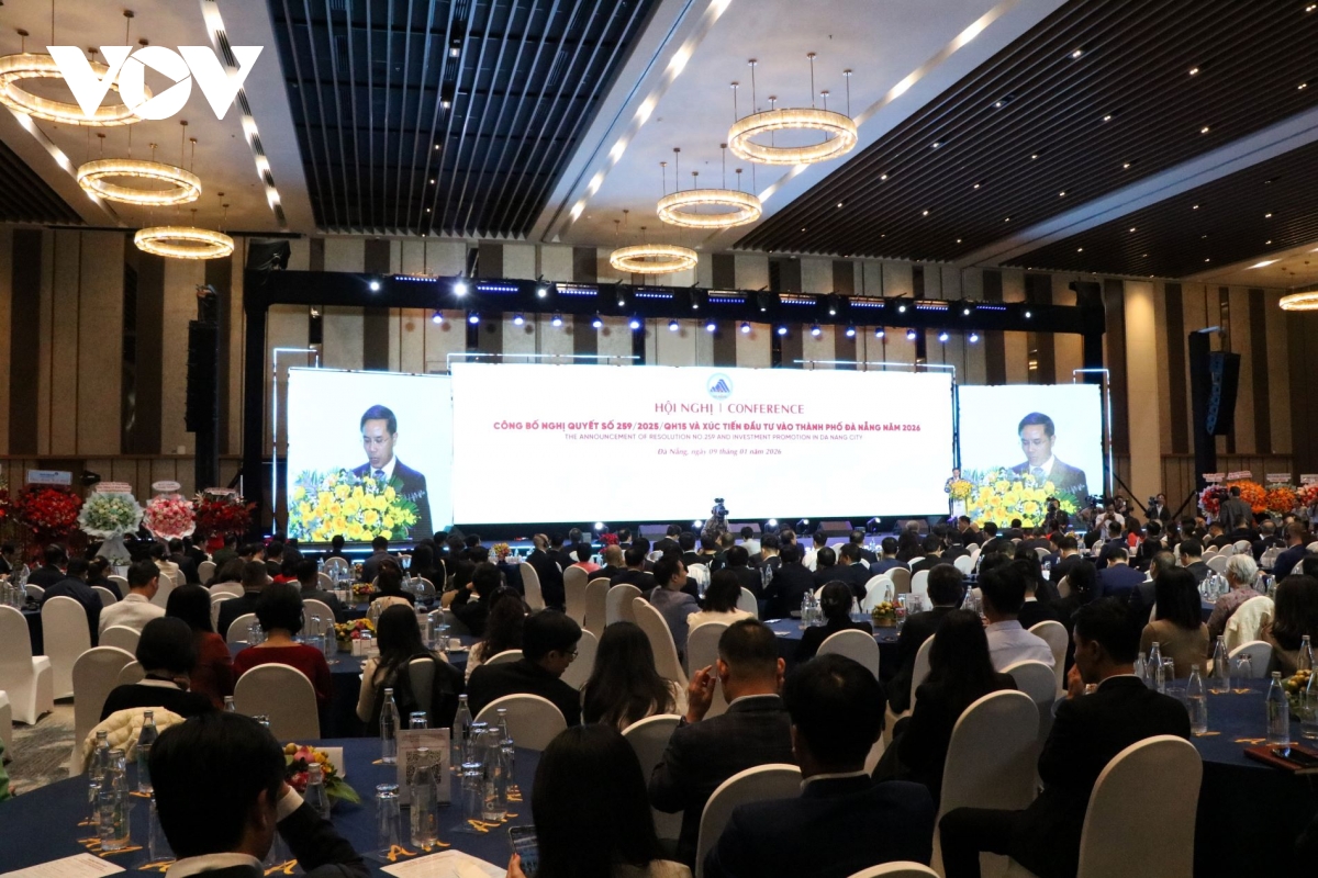 VOV.VN - Chiều 9/1/2026, tại Cung Hội nghị Quốc tế Ariyana, UBND thành phố Đà Nẵng tổ chức Hội nghị công bố Nghị quyết số 259/2025/QH15 của Quốc hội và xúc tiến đầu tư năm 2026. Ủy viên Bộ Chính trị, Phó Thủ tướng Thường trực Chính phủ Nguyễn Hòa Bình; Phó Chủ tịch Quốc hội Nguyễn Đức Hải dự và chỉ đạo hội nghị.
