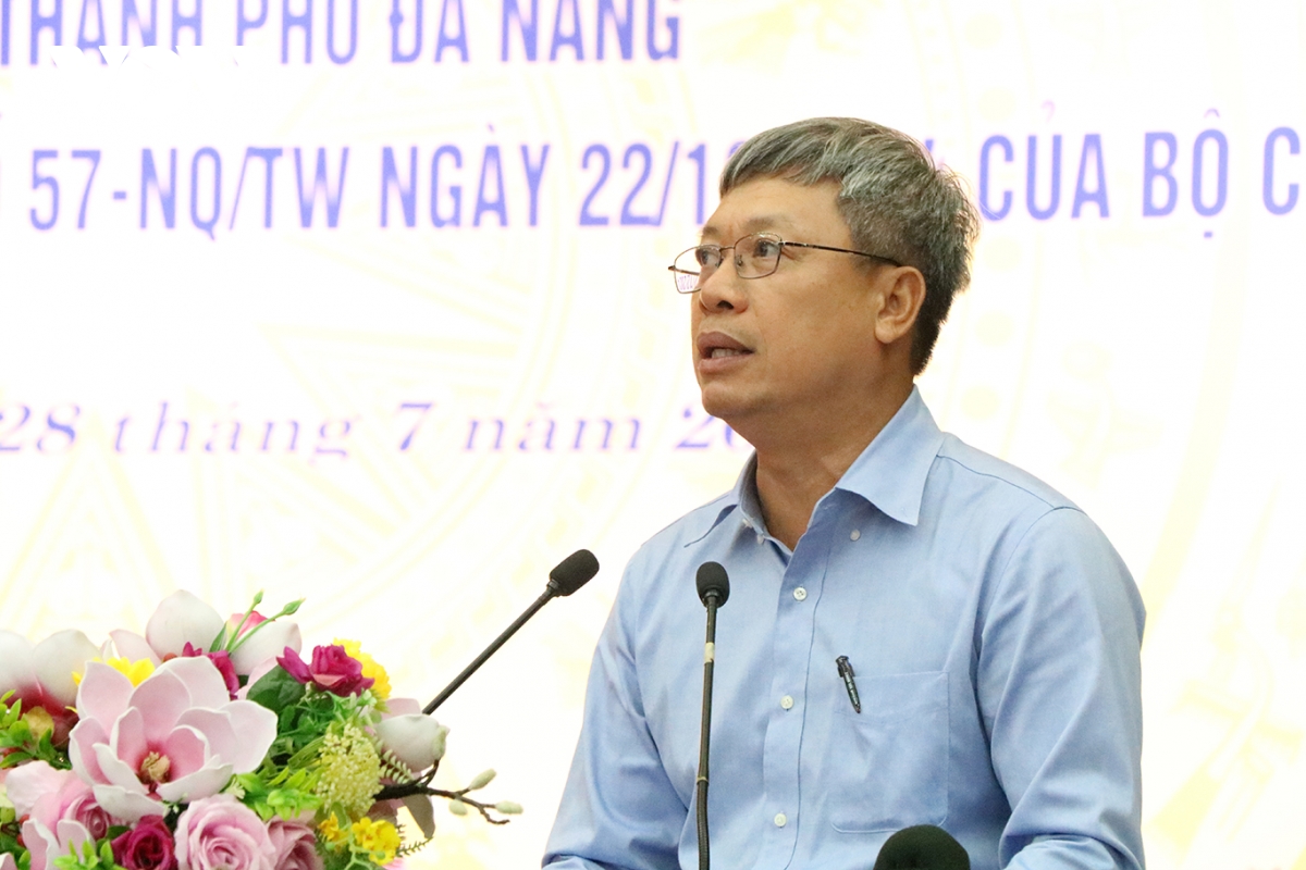 Ông Hồ Quang Bửu, Phó Chủ tịch UBND thành phố Đà Nẵng báo cáo kết quả triển khai Nghị quyết số 57-NQ-TW tại thành phố Đà Nẵng.