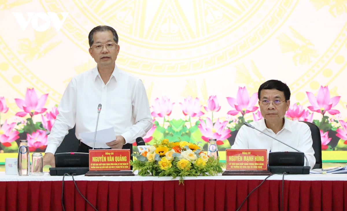 Ông Nguyễn Mạnh Hùng, Bộ trưởng Bộ Khoa học và Công nghệ và ông Nguyễn Văn Quảng, Bí thư Thành ủy Đà Nẵng đồng chủ trì buổi làm việc. Buổi làm việc được tổ chức theo hình thức trực tiếp kết hợp trực tuyến quy mô lớn với hơn 250 đại biểu tham dự trực tiếp, hơn 1.000 đại biểu tham dự trực tuyến tại 93 điểm cầu xã, phường.