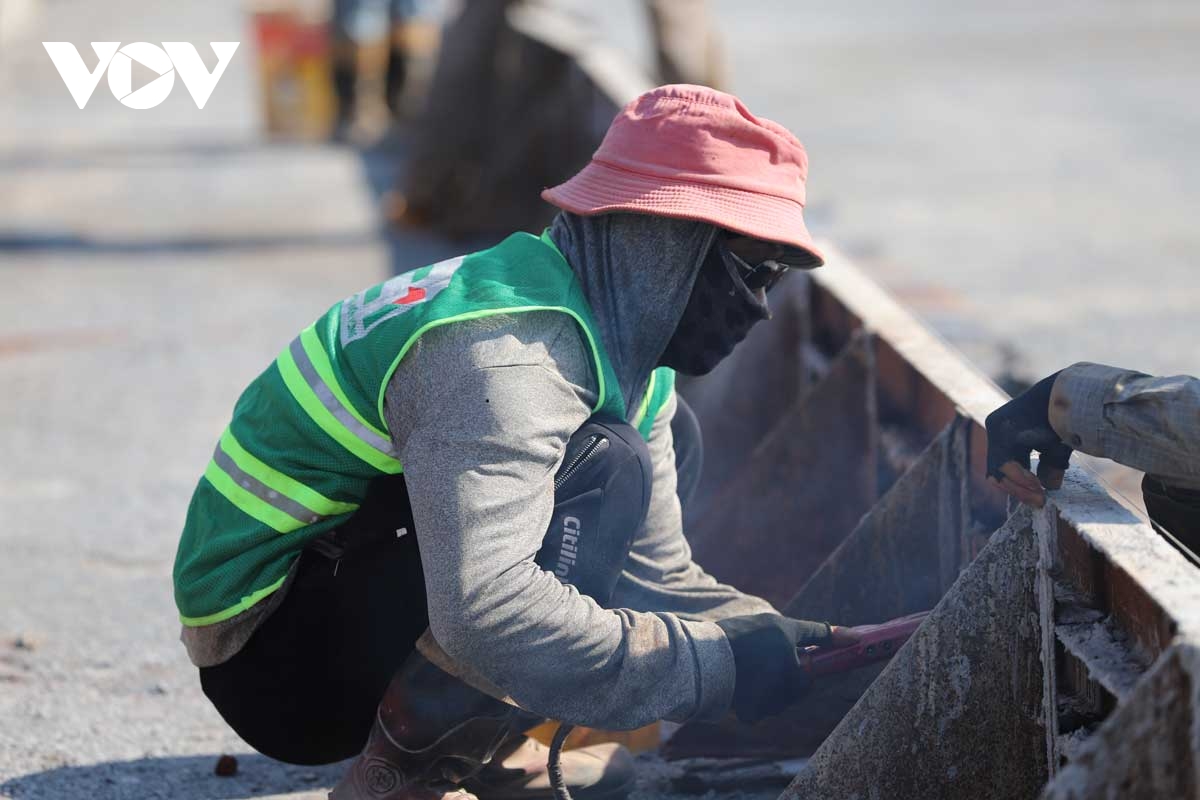 Tại gói thầu do Binh đoàn 12- Tổng Công ty Xây dựng Trường Sơn đảm nhiệm, không khí thi công nóng hơn bao giờ hết. Hàng ngàn cán bộ, kỹ sư và người lính thợ vẫn bám trụ công trường, quyết tâm làm việc xuyên kỳ nghỉ lễ.