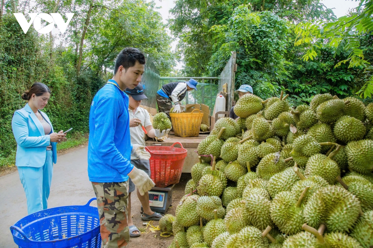 Các mặt hàng chủ lực của phía Tây như sầu riêng, cà phê, mắc ca được đưa xuống phía Đông