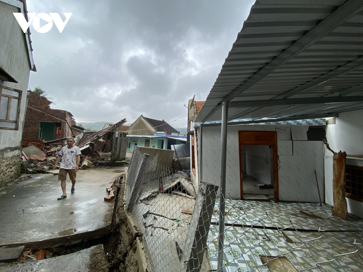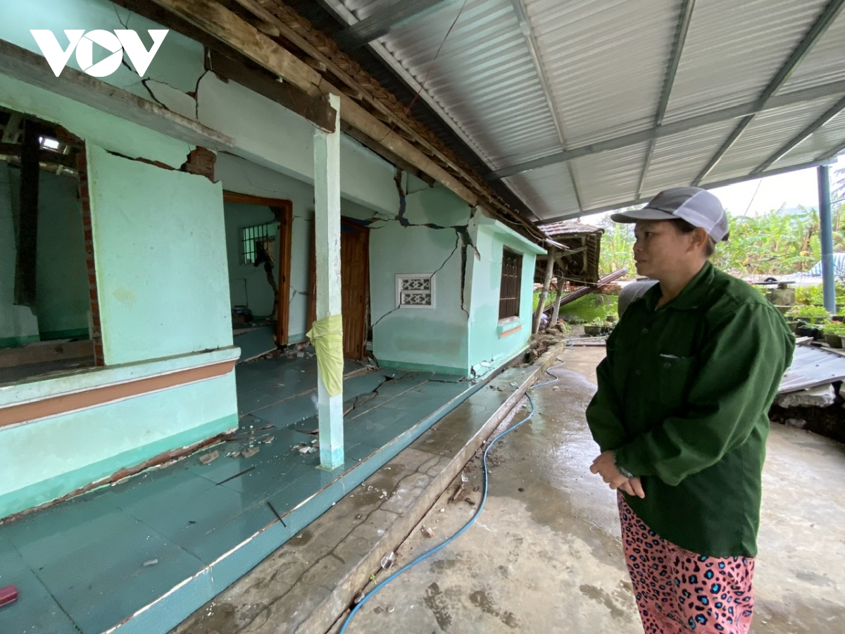 Ngôi nhà từng là thành quả chắt chiu suốt nhiều năm lao động của vợ chồng bà Lê Thị Minh Trang, thôn Vĩnh Xuân, xã Tuy An Tây, nay chỉ còn là đống đổ nát sau khi quả đồi phía sau bất ngờ sạt lở. Chiều 19/11, nhà xuất hiện các vết nứt lớn, chính quyền địa phương kịp thời yêu cầu sơ tán. Thế nhưng chỉ sau một đêm mưa lớn, căn nhà đã sập hoàn toàn. Hoàn cảnh của gia đình bà Trang cũng là thực trạng chung của 35 hộ dân buộc phải di dời tại thôn Vĩnh Xuân.
