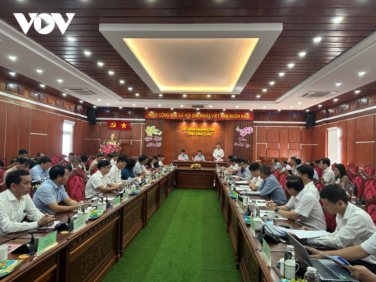 Ông Lương Nguyễn Minh Triết, UVBCH Trung ương Đảng, Bí thư Tỉnh ủy và ông Tạ Anh Tuấn, Phó Bí thư Tỉnh uỷ, Chủ tịch UBND tỉnh Đắk Lắk đồng chủ trì cuộc họp.