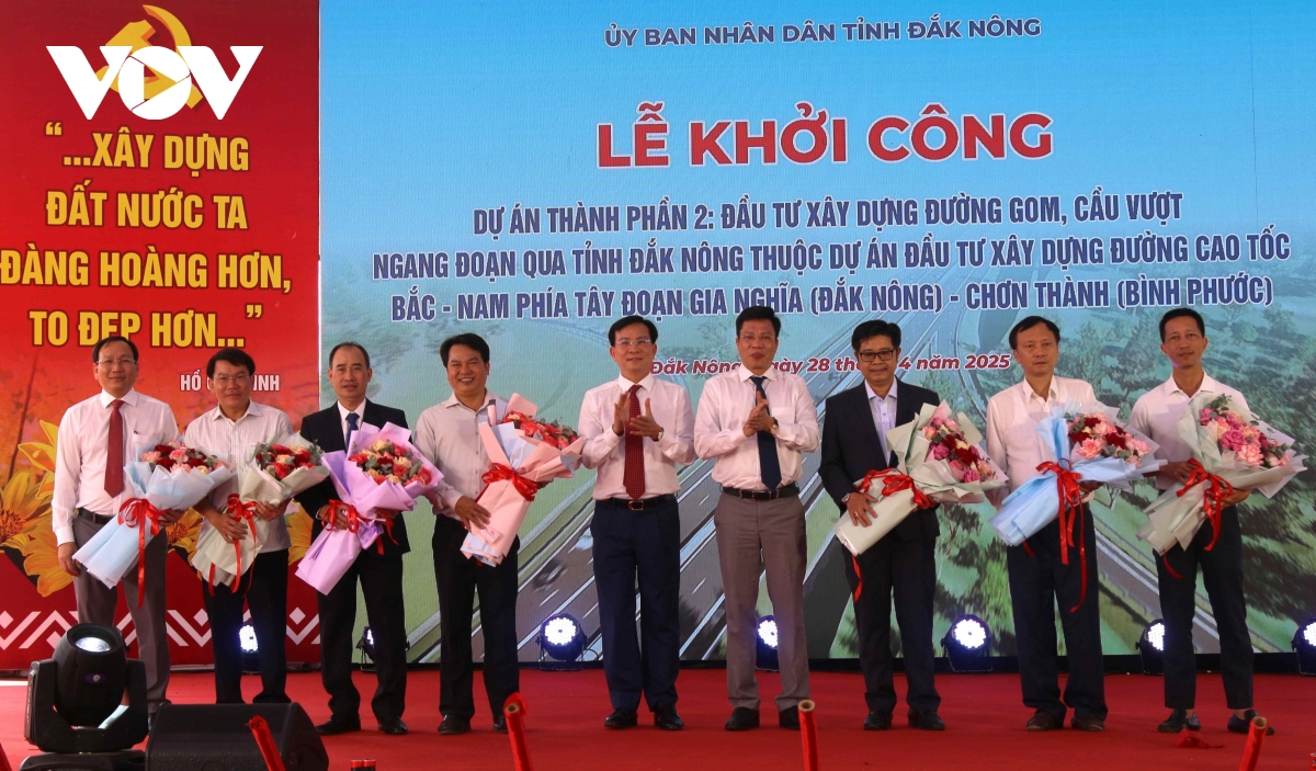 VOV.VN - Sáng 28/4, tại xã Đắk Ru, huyện Đắk R’lấp, tỉnh Đắk Nông, UBND tỉnh Đắk Nông long trọng tổ chức Lễ khởi công Dự án thành phần 2, cao tốc Gia Nghĩa - Chơn Thành. Đây là một trong những dự án thành phần sử dụng 100% vốn ngân sách địa phương.