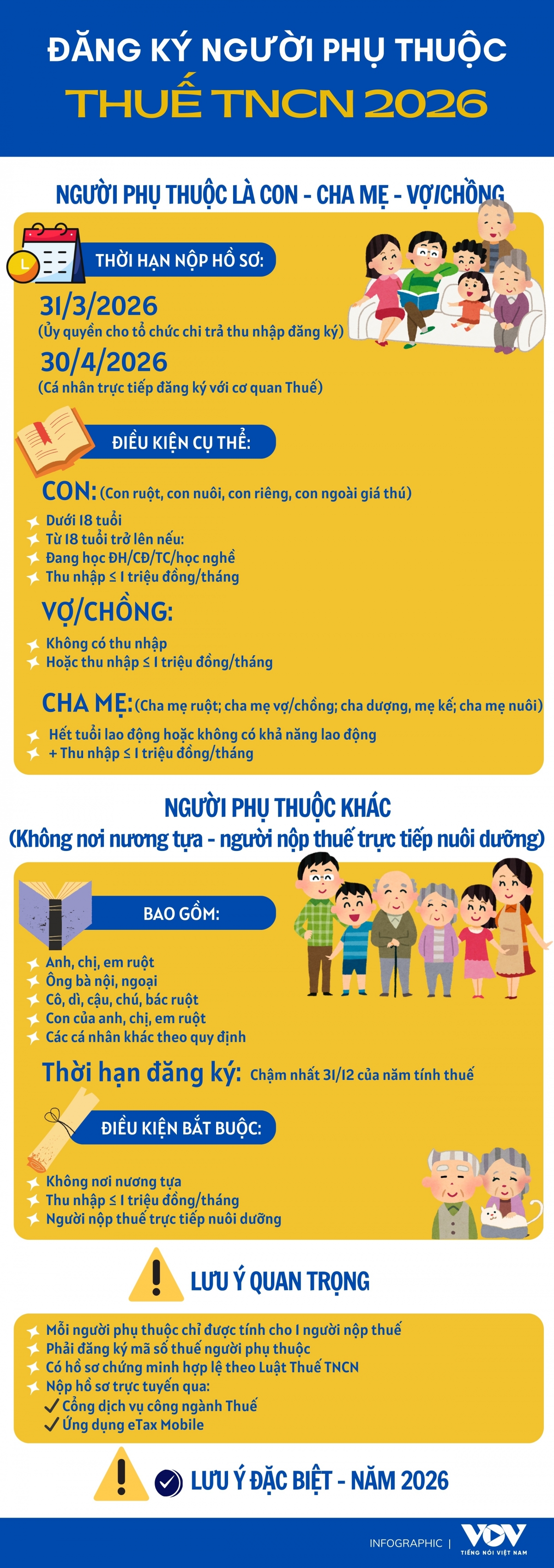 VOV.VN - Việc đăng ký người phụ thuộc là điều kiện quan trọng để người nộp thuế được áp dụng giảm trừ gia cảnh khi quyết toán thuế thu nhập cá nhân (TNCN). Nắm rõ đối tượng được tính, điều kiện áp dụng và các mốc thời hạn đăng ký sẽ giúp người nộp thuế tránh rủi ro bị loại giảm trừ theo quy định.