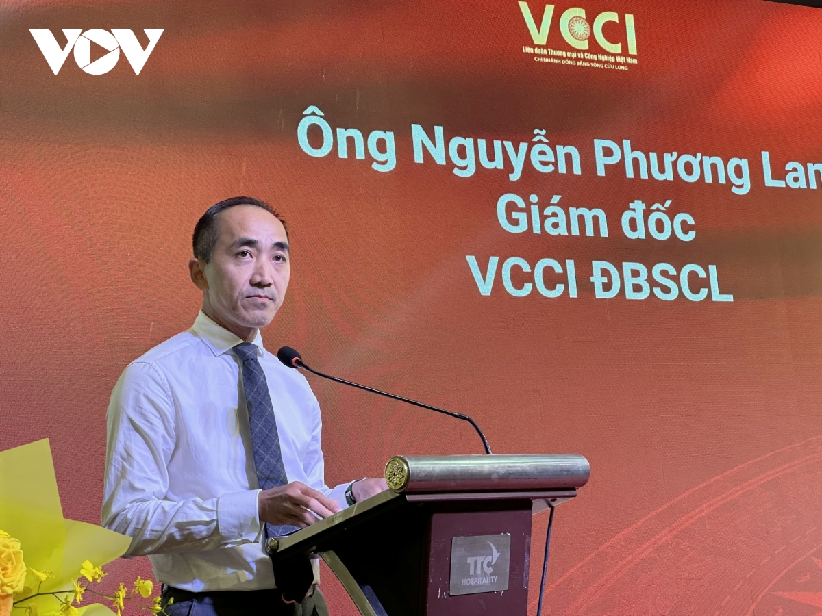 Ông Nguyễn Phương Lam, Giám đốc Liên đoàn thương mại và công nghiệp Việt Nam Chi nhánh ĐBSCL phát biểu.