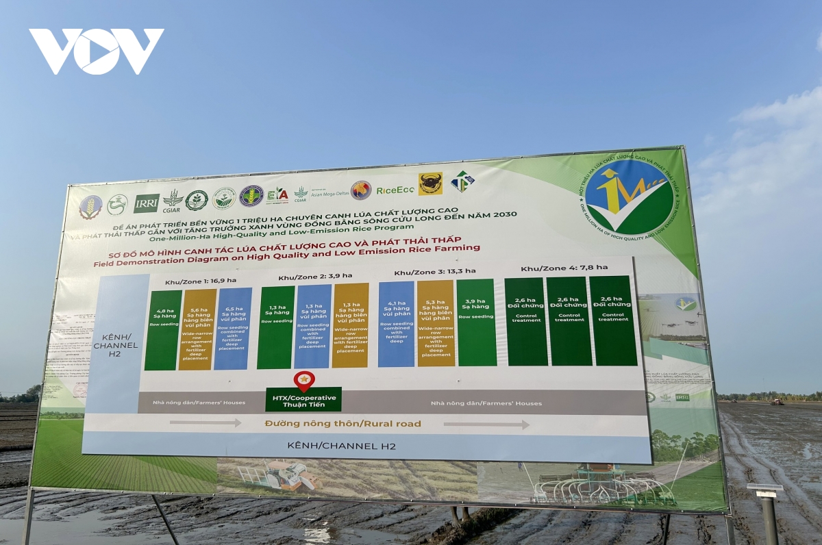 VOV.VN - Việt Nam đang triển khai Đề án phát triển bền vững 1 triệu ha chuyên canh lúa chất lượng cao, phát thải thấp gắn với tăng trưởng xanh vùng ĐBSCL đến năm 2030.