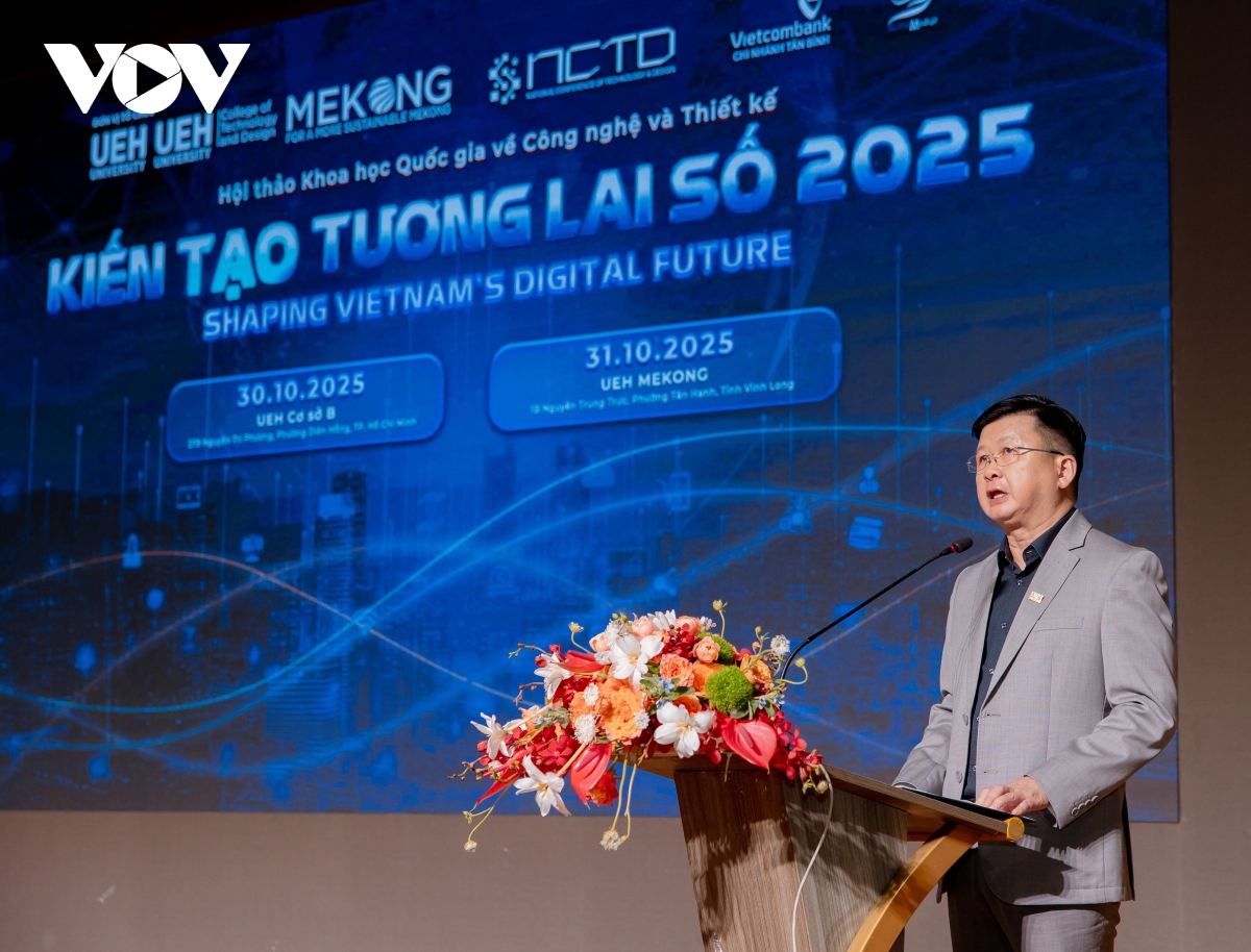 VOV.VN - Đại học Kinh tế TP.HCM (UEH) tổ chức Hội thảo khoa học quốc gia về Công nghệ và thiết kế năm 2025 (NCTD 2025) với chủ đề “Kiến tạo tương lai số”. UEH tiếp tục nêu quan điểm triển khai “Nền tảng đồng sáng tạo” để thực hiện và giải quyết các vấn đề đô thị TP.HCM sau sáp nhập.