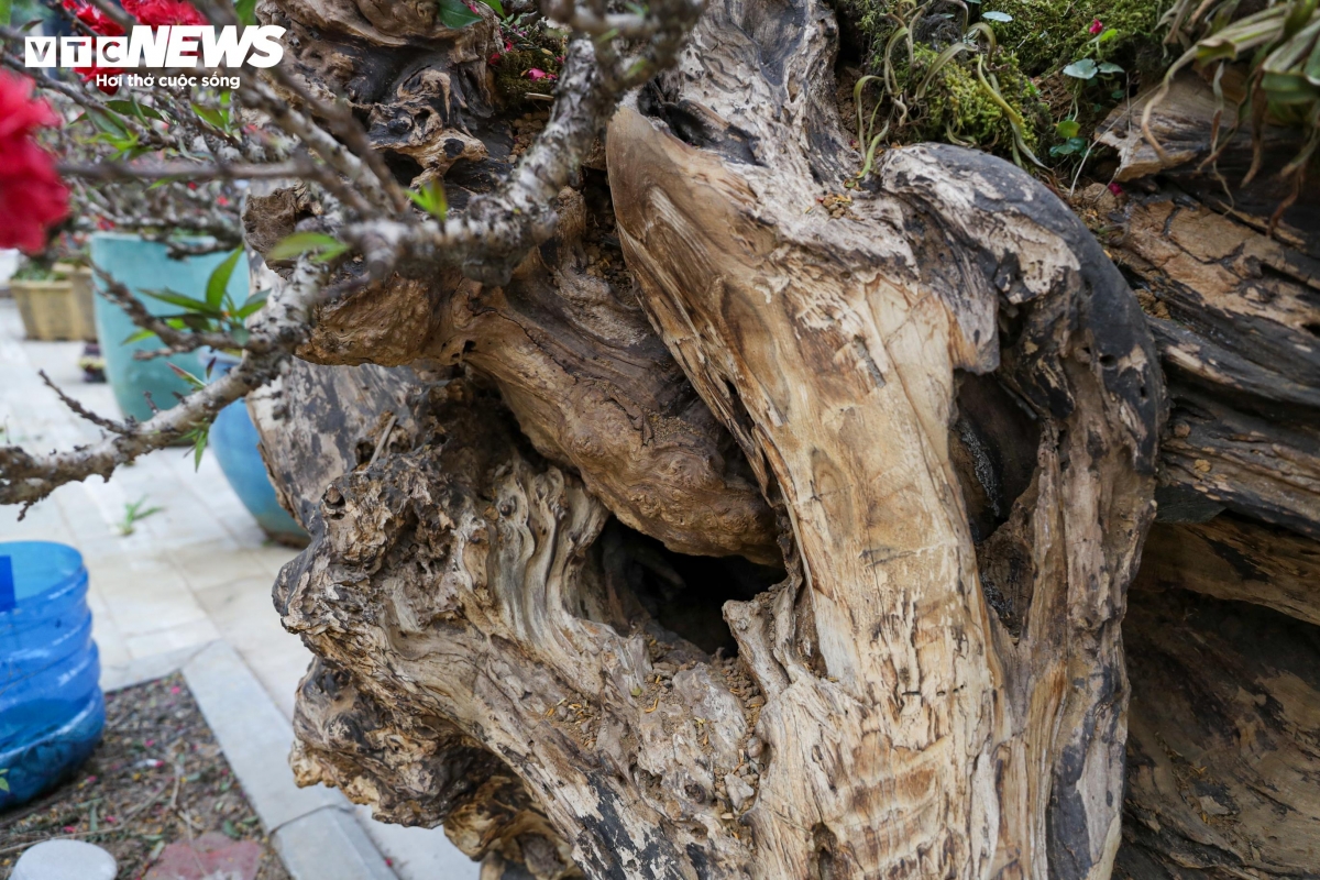 Điểm đặc biệt của cặp đào không chỉ nằm ở giống quý hiếm mà còn ở hai khối gỗ hoàng đàn Lạng Sơn có tạo hình đẹp mắt, tỏa mùi hương thơm nhẹ đặc trưng. Mỗi thân gỗ hoàng đàn được ghép từ 3 - 4 gốc đào thất thốn với nhiều dáng thế khác nhau, tạo nên tổng thể độc lạ.