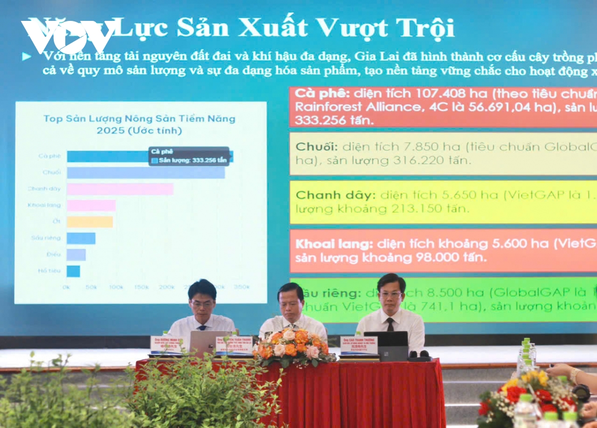 Hiện nay, Gia Lai có gần 1 triệu ha đất sản xuất nông nghiệp với các vùng chuyên canh quy mô lớn. Trong đó, cà phê là cây trồng chủ lực, với hơn 107.000ha, sản lượng hàng năm trên 333.000 tấn.