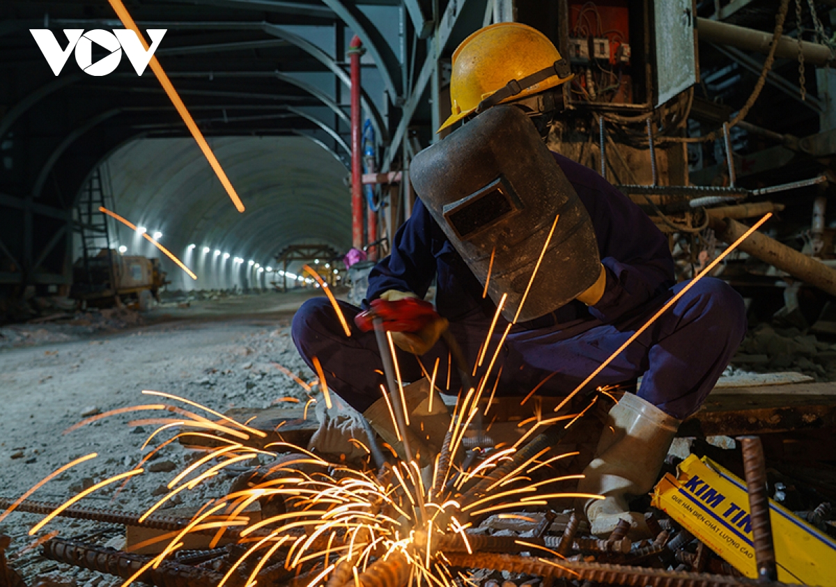 Công nhân đang thực hiện các mối hàn trong hạng mục hầm