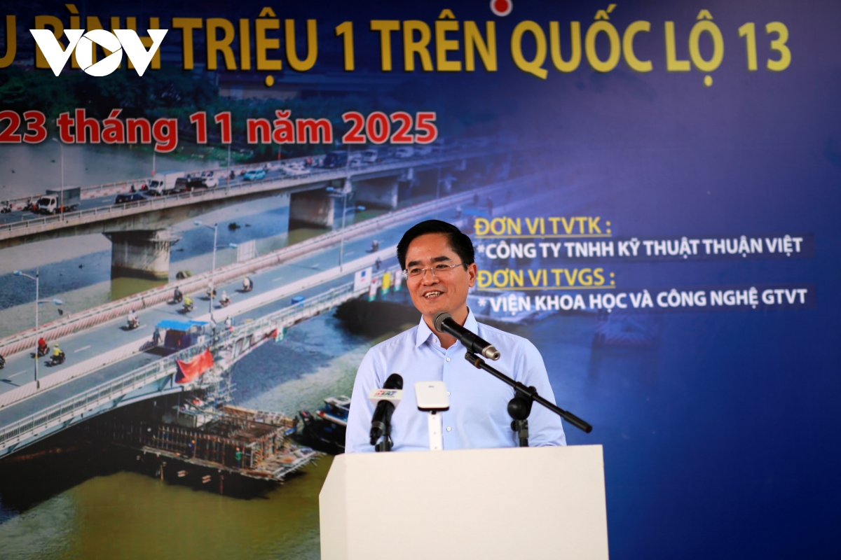 Phát biểu tại buổi lễ, Giám đốc Sở Xây dựng TP.HCM Trần Quang Lâm cho biết, việc nâng tĩnh không cầu Bình Triệu 1 trên Quốc lộ 13 và cầu Bình Phước 1 trên Quốc lộ 1 sẽ giúp đồng bộ tĩnh không các cầu trên sông Sài Gòn, đạt tối thiểu 7 m theo quy hoạch kết cấu hạ tầng đường thủy nội địa thời kỳ 2021–2030, tầm nhìn đến 2050 của Thủ tướng Chính phủ.
