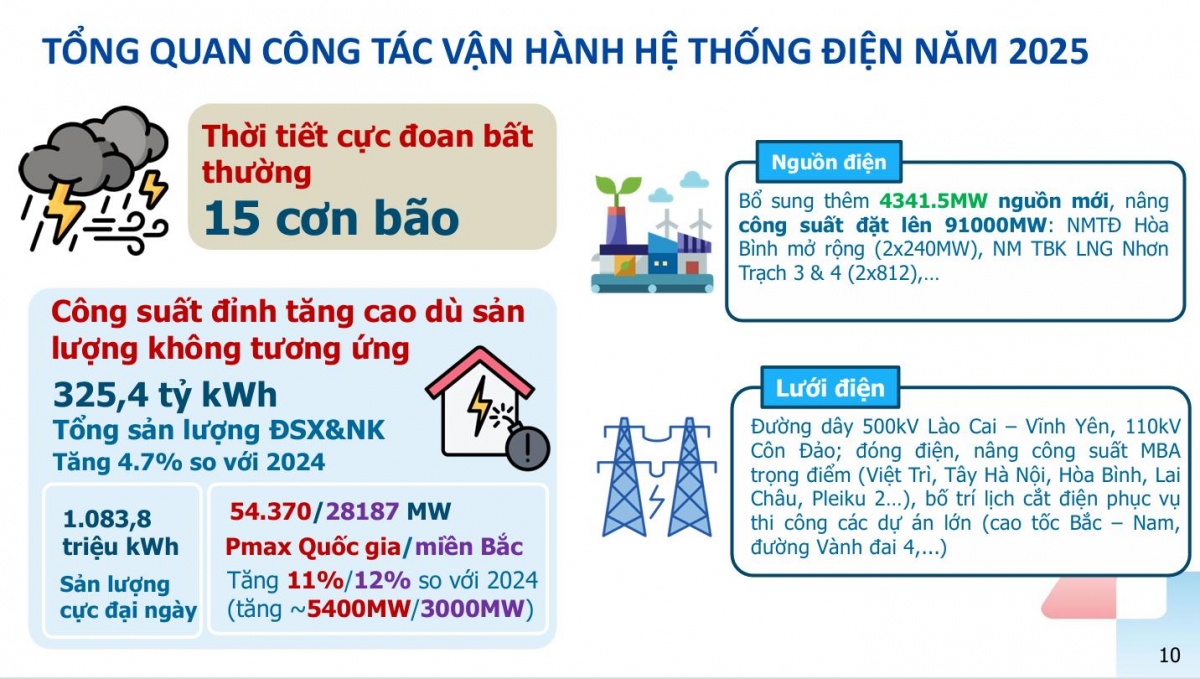 "Căng thẳng, thậm chí thiếu điện cục bộ đã từng xảy ra ở nhiều địa phương khu vực miền Bắc trong một số thời gian cao điểm mùa khô những năm gần đây và luôn là áp lực trong đảm bảo điện khi tỷ lệ nguồn điện phụ thuộc vào thời tiết khá lớn (như thuỷ điện, nay thêm nguồn điện gió, điện mặt trời). “Cơ sở hạ tầng ngành năng lượng còn thiếu và chưa đồng bộ” đã được Nghị quyết 70-NQ/TW của Bộ Chính trị chỉ ra và nhấn mạnh: phải “phát triển nguồn điện cân đối, hợp lý theo lợi thế vùng, miền, địa phương, hướng tới cân bằng cung - cầu nội vùng…”, ông Đạt nói.