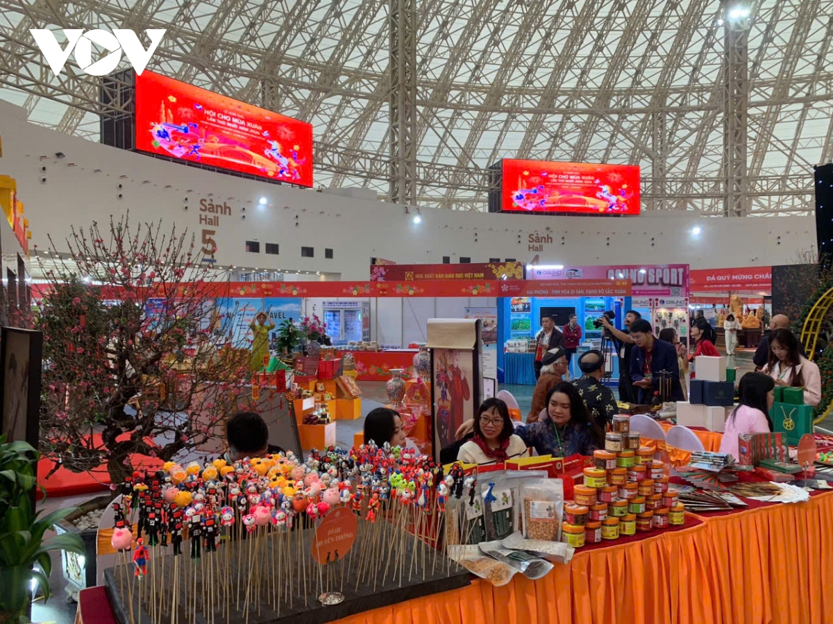 VOV.VN - Hôm nay (2/2), tại Trung tâm Triển lãm Việt Nam (VEC) (xã Đông Anh, Hà Nội) chính thức diễn ra Hội chợ Mùa Xuân lần thứ nhất năm 2026. Giữa không khí rộn ràng của Hội chợ Mùa Xuân, phân khu 'Tết sum vầy' của Hà Nội hiện lên như một lát cắt tinh tế, gần gũi, đậm nét truyền thống.