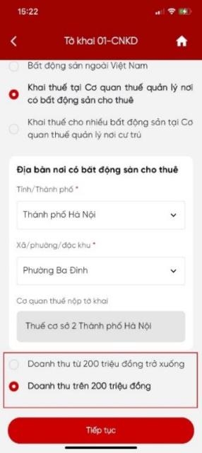 - Hộ, cá nhân kinh doanh tích chọn “Doanh thu từ hoạt động cho thuê bất động sản (cho thuê nhà xưởng, kho bãi, cửa hàng, mặt bằng”