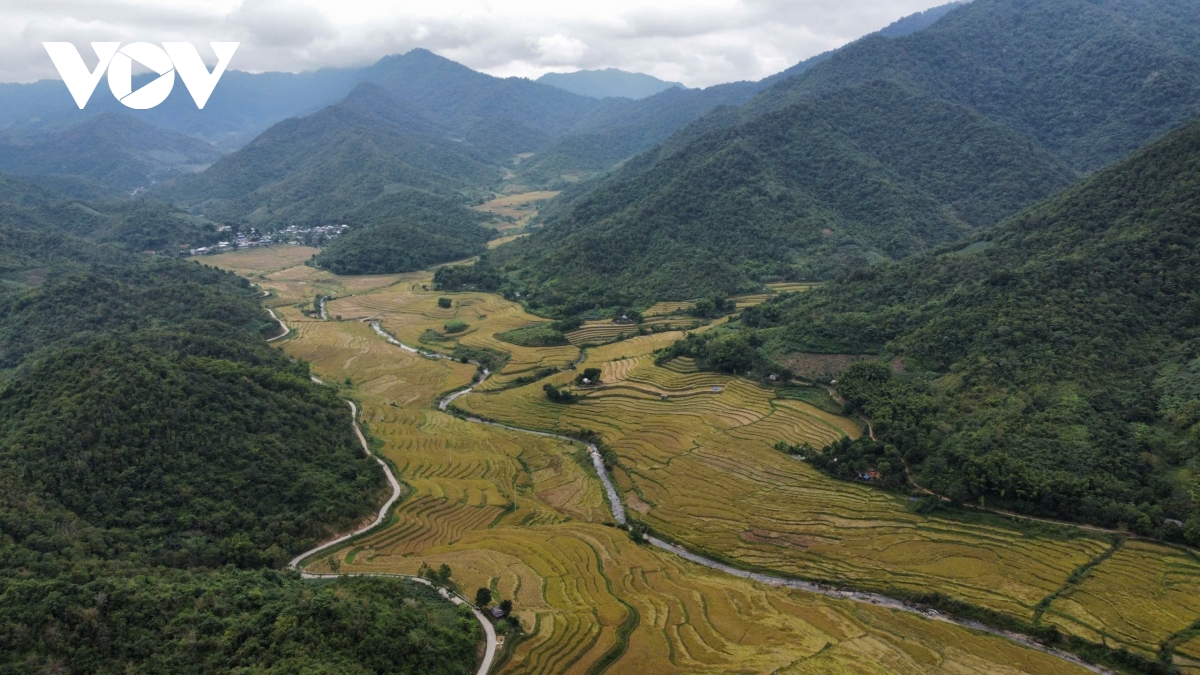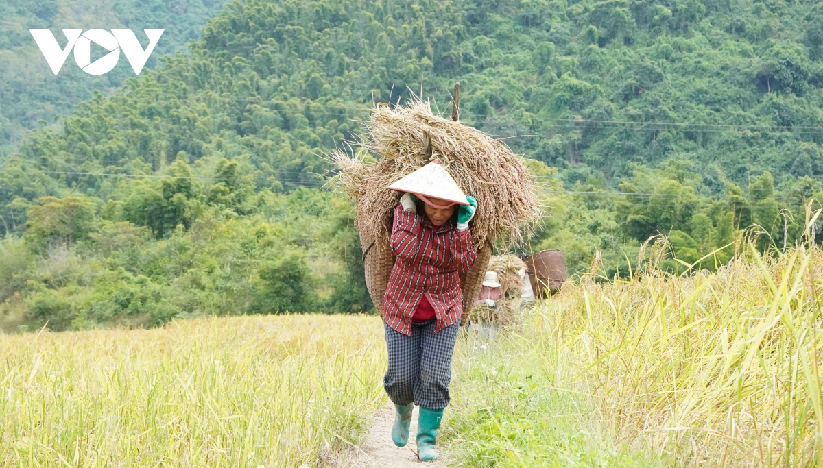VOV.VN - Giữa đại ngàn Quang Chiểu, những cánh đồng nếp Cay Nọi óng vàng trong nắng thu, người già, trẻ nhỏ rộn ràng thu hoạch, mang về hương nếp thơm nồng, no ấm của núi rừng biên cương.