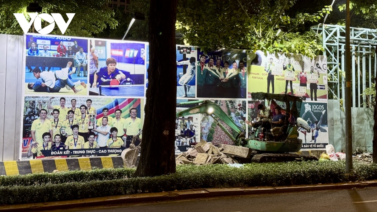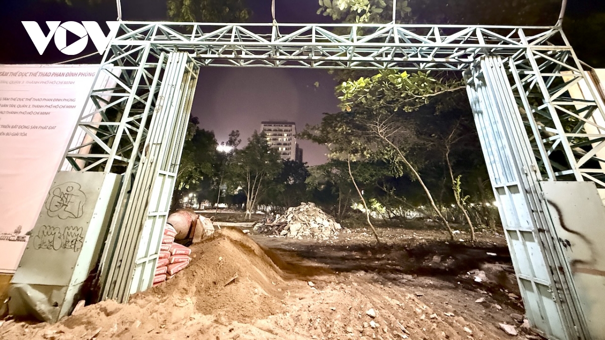 VOV.VN - Sau nhiều năm bỏ hoang, khu “đất vàng” nhà thi đấu Phan Đình Phùng đang được đánh thức bằng nhịp độ thi công khẩn trương suốt ngày đêm, để kịp trở thành không gian công cộng, vườn hoa phục vụ người dân trong dịp Tết Bính Ngọ 2026.