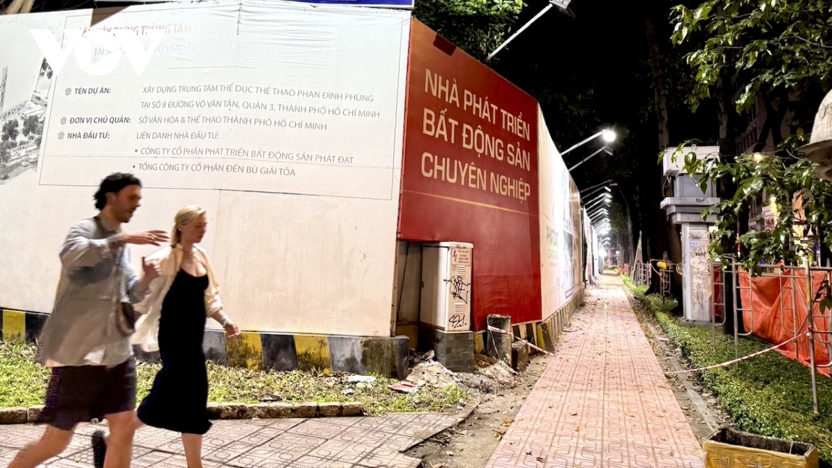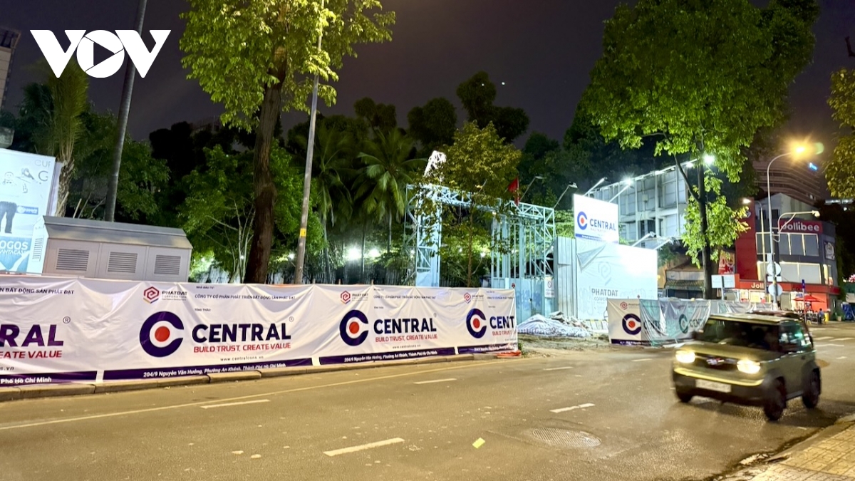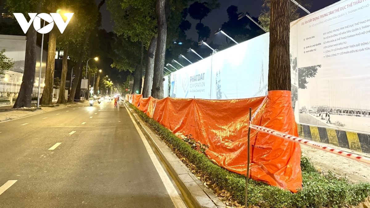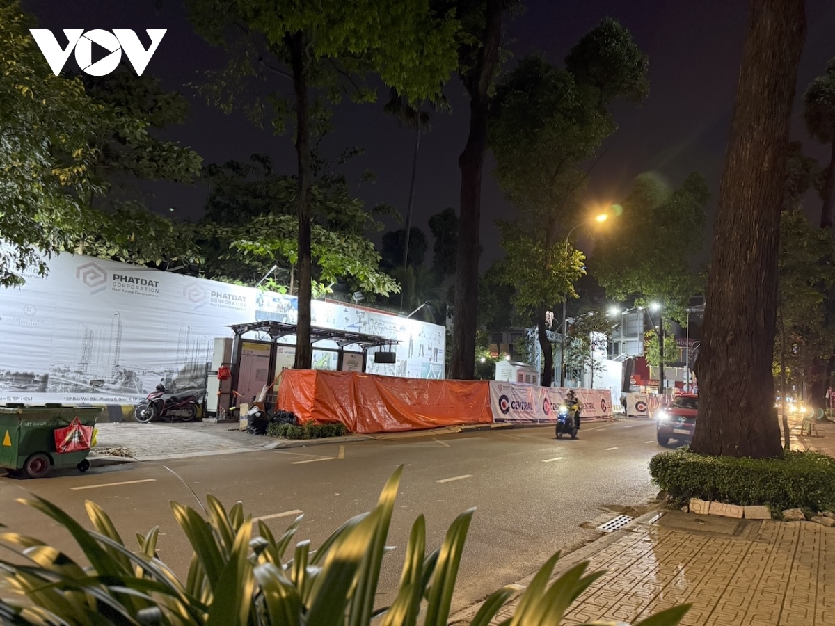Đêm ngày 14/1, 1 đoạn đường Nguyễn Đình Chiểu, và đường Võ Văn Tần được phủ bạt đoạn từ vỉa hè vào công trường dự án để phục vụ thi công