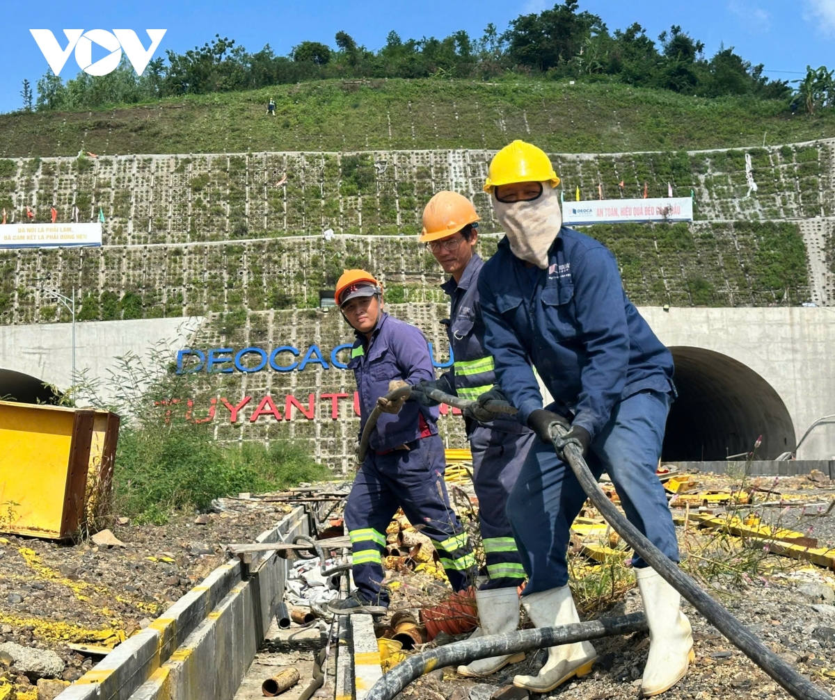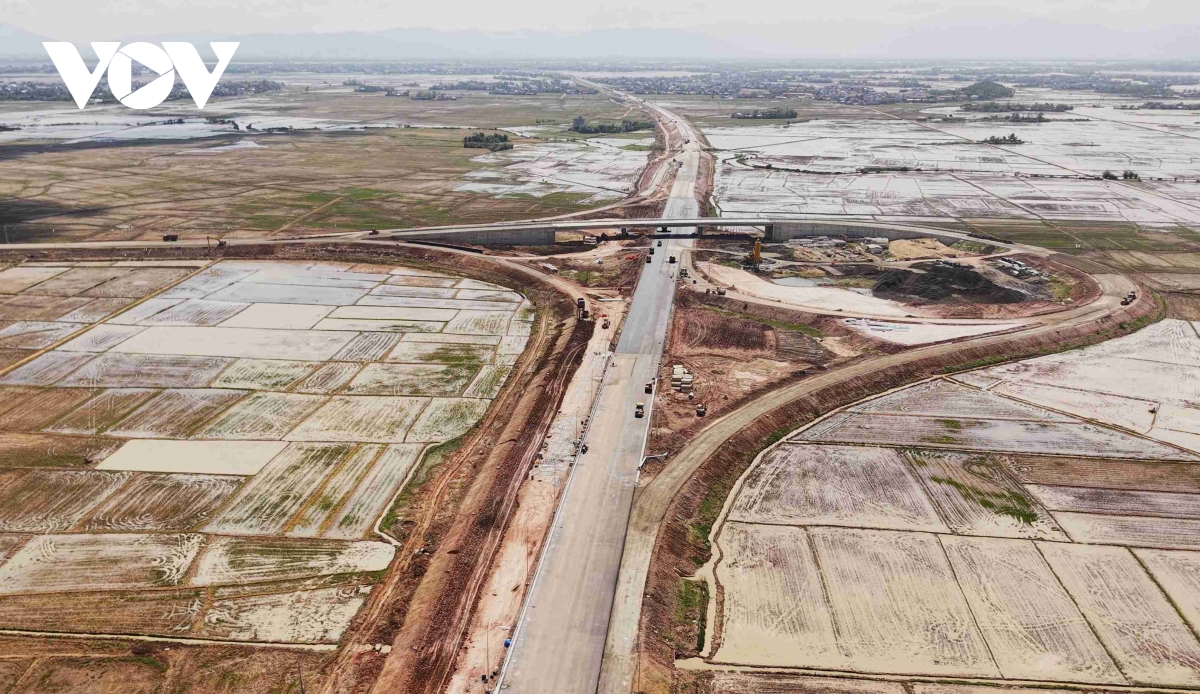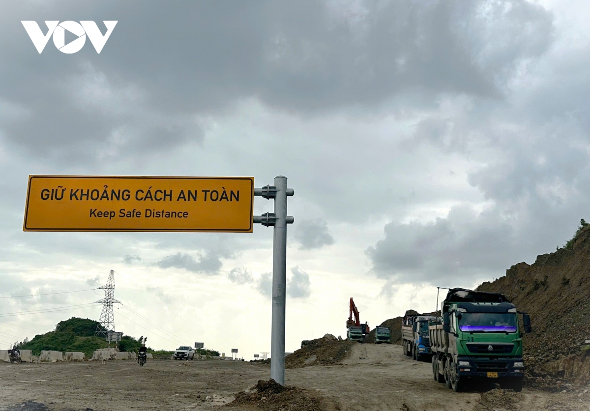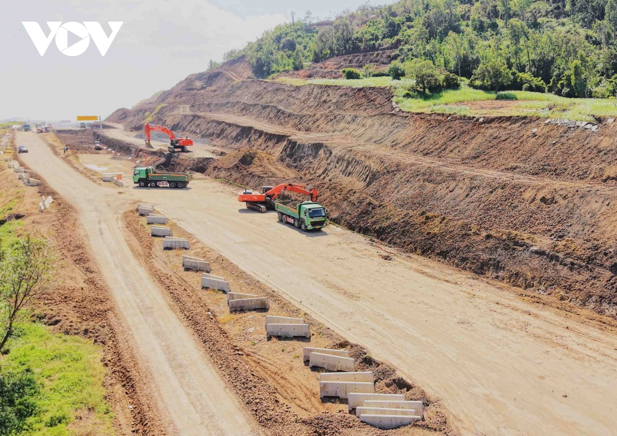 Công trình đang trong giai đoạn nước rút, mỗi ngày các nhà thầu vẫn bố trí hàng chục phương tiện máy móc cùng hàng trăm công nhân, kỹ sư thi công xây lắp hoàn thành tuyến đường. Không khí lao động diễn ra khẩn trương, chào mừng Đại hội XIV của Đảng.