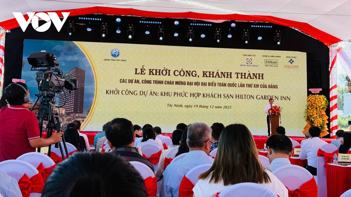 Sáng cùng ngày 19/12, tỉnh Tây Ninh cũng tổ chức Lễ khởi công Dự án Khu phức hợp khách sạn Hilton Garden INN tại phường Tân Ninh. Đây là một trong hai dự án trọng điểm của tỉnh được lựa chọn để chào mừng Đại hội đại biểu toàn quốc lần thứ XIV của Đảng.