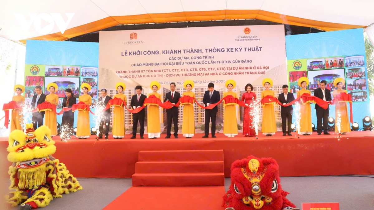 Sáng nay (19/12), UBND TP Hải Phòng phối hợp Công ty Cổ phần Khu công nghiệp Sài Gòn – Hải Phòng tổ chức Lễ khánh thành 7 tòa nhà thuộc Dự án Nhà ở xã hội (NOXH) Evergreen Tràng Duệ. Đây là một trong hai điểm cầu chính của thành phố Hải Phòng trong sự kiện khởi công, khánh thành 13 công trình, dự án trọng điểm chào mừng Đại hội đại biểu toàn quốc lần thứ XIV của Đảng.