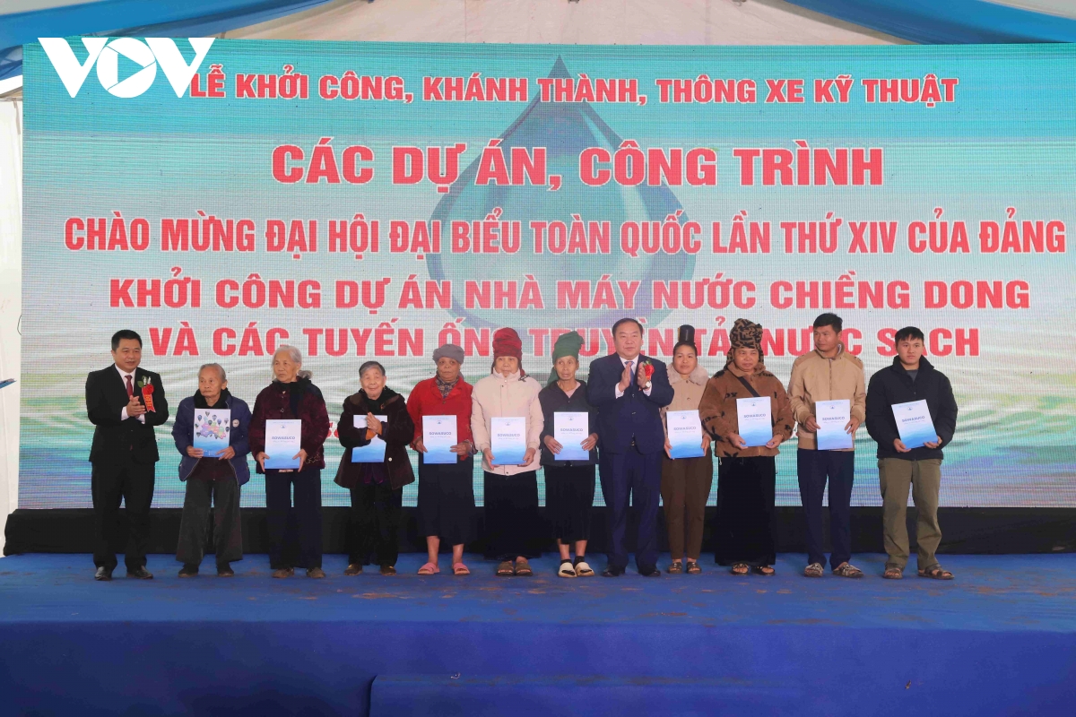 Ông Trần Quyết Chiến, Tổng Giám đốc Công ty Cổ phần cấp nước Sơn La cho biết: Bước vào giai đoạn thi công, chúng tôi nhận thức sâu sắc rằng, khởi công mới chỉ là bước khởi đầu, còn rất nhiều khó khăn, thách thức phía trước. Với trách nhiệm của một doanh nghiệp được giao thực hiện dự án quan trọng này, Công ty Cổ phần Cấp nước Sơn La xin cam kết phối hợp chặt chẽ với các đơn vị liên quan, tập trung mọi nguồn lực, quyết tâm hoàn thành dự án đúng tiến độ đề ra, sớm đưa công trình vào khai thác, sử dụng. – Ông Chiến nói. Tại buổi lễ, các đại biểu đã thực hiện nghi thức khởi công dự án; trao quà cho 10 hộ gia đình có hoàn cảnh khó khăn tại xã Chiềng Mung và Chiềng Mai. (PV Trấn Long/VOV-Tây Bắc thông tin)