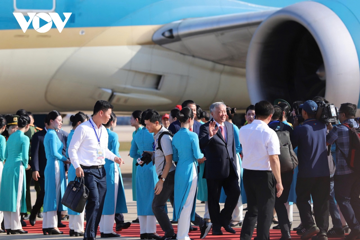 Dẫn đầu đoàn khách đặc biệt khai trương sân bay Long Thành là Phó Thủ tướng Thường trực Chính phủ Nguyễn Hòa Bình. Ngay tại thảm đỏ của thang bay, các tiếp viên của hãng hàng không Vietnam Airlines cũng đã có màn chào đón, tặng hoa cho đoàn khách đặc biệt.