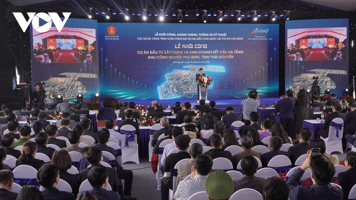 Ngày 19/12, tỉnh Thái Nguyên phối hợp với Tổng Công ty Phát triển Đô thị Kinh Bắc – CTCP long trọng tổ chức Lễ khởi công Dự án đầu tư xây dựng và kinh doanh kết cấu hạ tầng Khu công nghiệp (KCN) Phú Bình. Đây là một trong 245 dự án, công trình trên cả nước được đồng loạt khởi công, khánh thành chào mừng Đại hội XIV của Đảng.