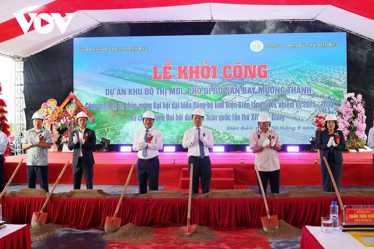 VOV.VN - Sáng nay 30/9, UBND tỉnh Điện Biên tổ chức Lễ khởi công xây dựng Khu đô thị mới, phố đi bộ sân bay Mường Thanh. Đây là công trình trọng điểm chào mừng Đại hội Đại biểu Đảng bộ tỉnh Điện Biên lần thứ XV, nhiệm kỳ 2025 – 2030.