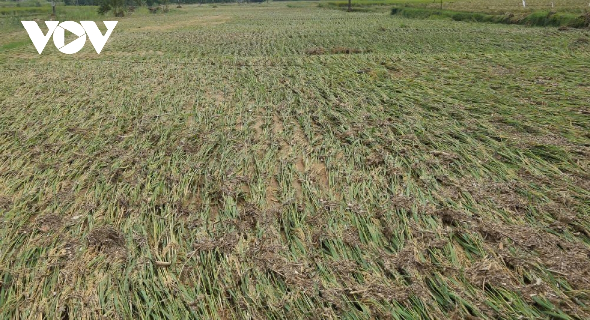 "Lúa thì mất hết, cây đao riềng thì tầm độ 6 sào mất trắng, còn 4 sào ở trên cao nước lũ ngập lưng chừng rồi rút ra thì vẫn còn, những chỗ trên đó thì vẫn còn vớt vát được chút giống má", bà Mến chia sẻ