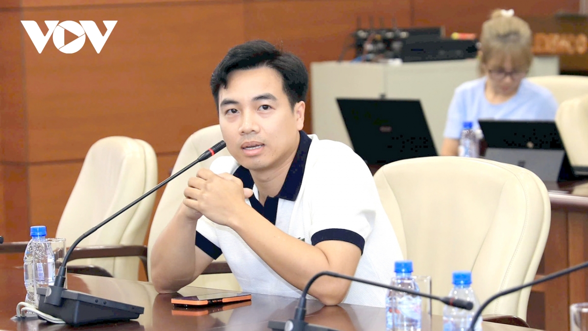 Ông Mạc Quốc Anh, Ủy viên Ủy ban Trung ương MTTQ Việt Nam, Phó Chủ tịch kiêm Tổng Thư ký Hiệp hội Doanh nghiệp nhỏ và vừa thành phố Hà Nội (HanoiSME) phát biểu tại tọa đàm - Ảnh: KK