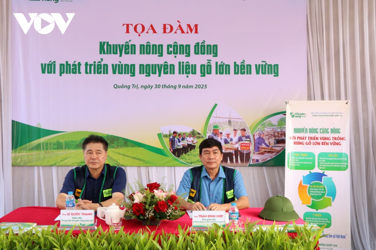 Tọa đàm “Khuyến nông cộng đồng với phát triển vùng nguyên liệu gỗ lớn bền vững” do Trung tâm Khuyến nông Quốc gia phối hợp với Sở Nông nghiệp và Môi trường tỉnh Quảng Trị tổ chức chiều 30/9 tại xã Bến Quan (Quảng Trị) đã ghi nhận nhiều kinh nghiệm, giải pháp và kỳ vọng mới.