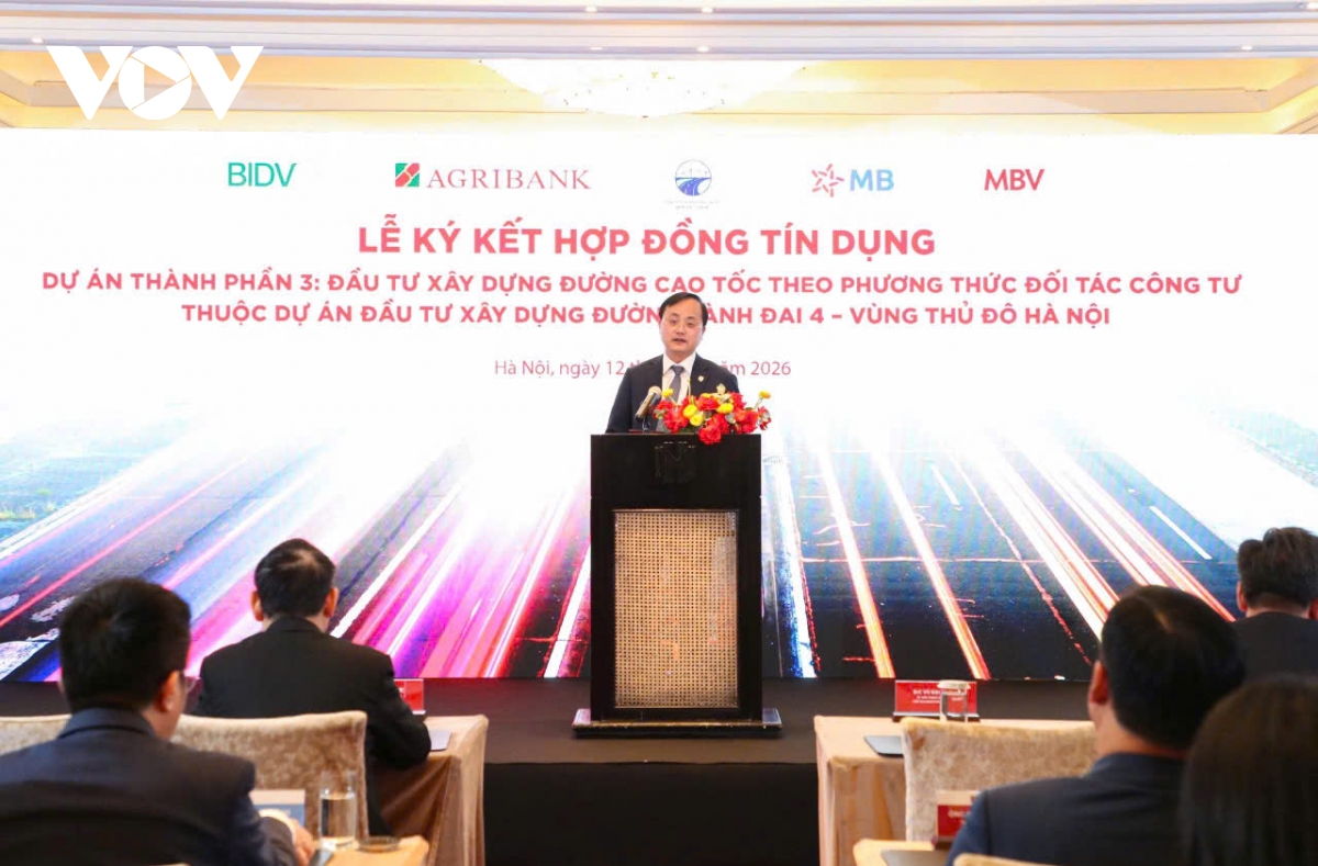 VOV.VN - Ngày 12/1/2026 tại Hà Nội, hợp đồng tín dụng 25.453 tỷ đồng được ký kết để đảm bảo vốn cho Dự án đường Vành đai 4 - Vùng Thủ đô. Agribank đứng đầu trong việc thu xếp vốn, cùng nhiều ngân hàng thương mại lớn, cam kết bảo đảm nguồn lực tài chính cho dự án.