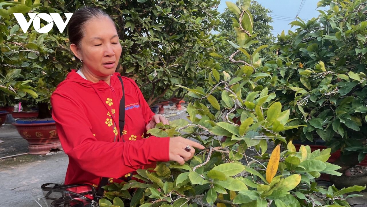 Bà Trần Kim Ngân tâm huyết với phong cách mai bonsai - Ảnh: Duy Phương