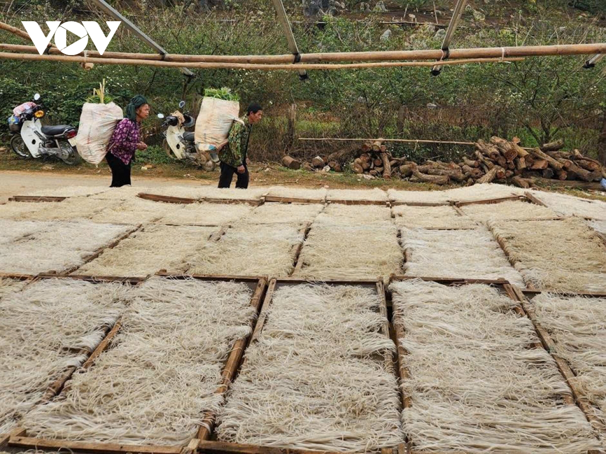 VOV.VN - Những ngày giáp Tết, khi sương sớm còn quấn quanh triền núi Lóng Phiêng (Sơn La), bản Quỳnh Phiêng đã rộn ràng thức giấc. Khắp các nếp nhà sàn, bếp lửa đỏ hồng bập bùng, mùi dong riềng quyện trong làn khói mỏng. Trên những khoảng sân rộng, hàng trăm phên tre xếp nối nhau, phơi đầy những sợi miến trắng trong.