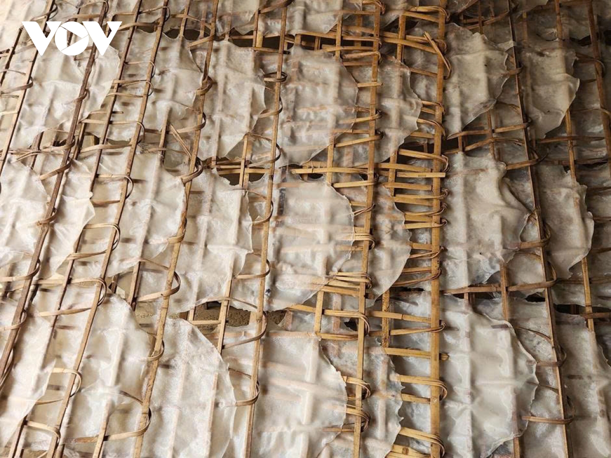 Tráng bột được đánh giá là công đoạn khó nhằn nhất trong quy trình làm miến, yêu cầu người tráng phải đều tay, sao cho lớp bánh mỏng vừa phải.
