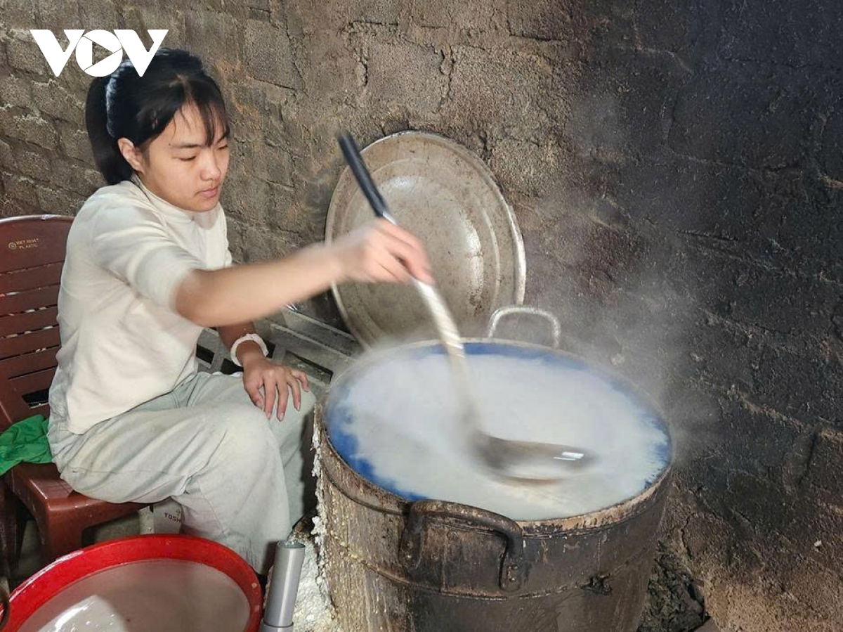 Bà Nguyễn Thị Hưởng, một trong những người gắn bó lâu năm với nghề, vừa thoăn thoắt tráng bánh miến vừa chia sẻ: “Ngày xưa làm miến chủ yếu để ăn trong nhà, biếu họ hàng, đãi khách dịp Tết. Ai ngờ bây giờ miến dong lại thành kế sinh nhai chính của cả bản”.