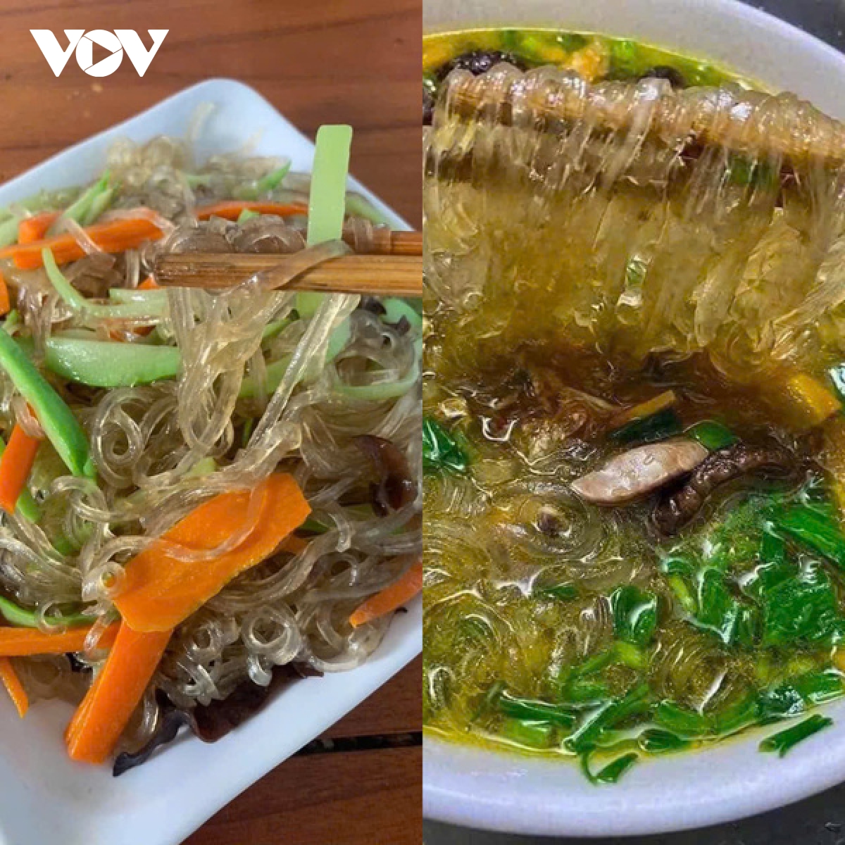 Sợi miến dong Quỳnh Phiêng trắng trong, không chứa chất bảo quản.