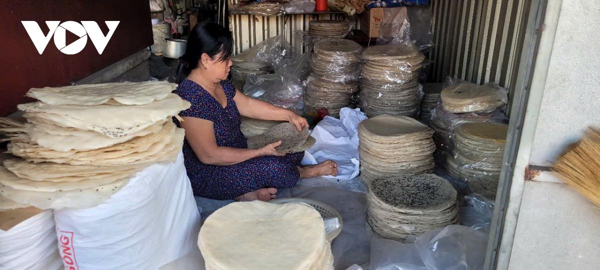 Những chiếc bánh tráng chuẩn bị đưa ra phục vụ thị trường Tết ở làng nghề bánh tráng Mỹ Lồng